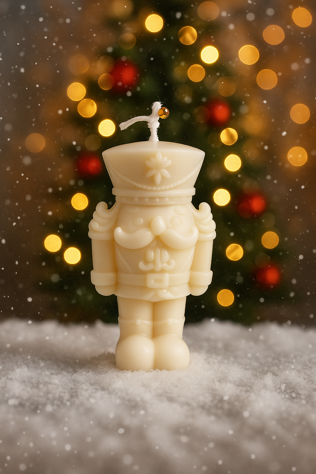 Deze prachtige handgemaakte notenkrakerkaars brengt direct een feestelijke sfeer in je interieur.